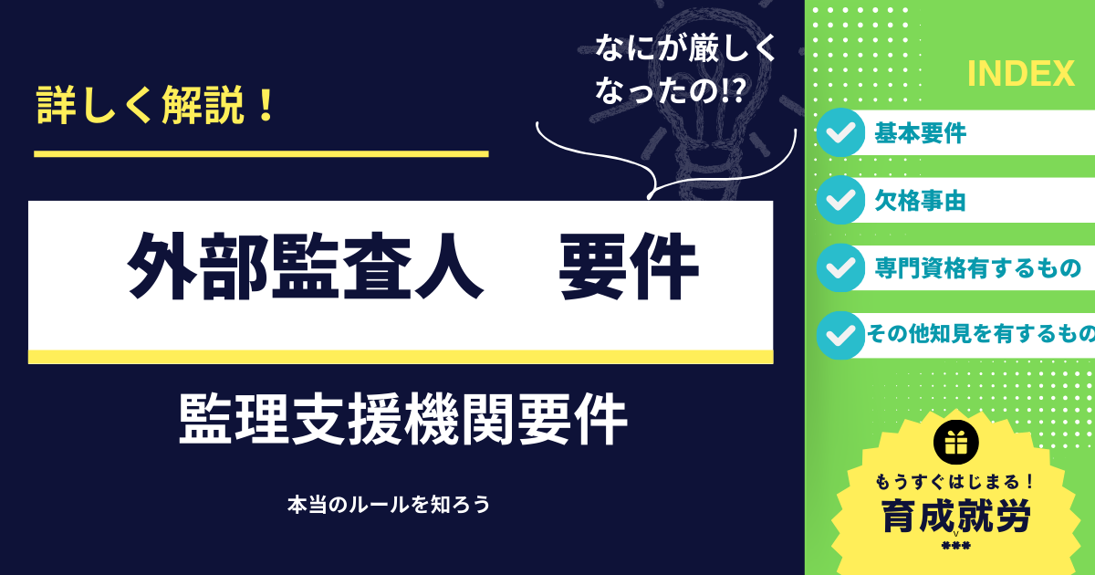 また、外部監査人は、監理支援機関の業務の実施状況について、主務省令で定める基準に従い、定期的に監査を実施し、その結果を報告する重い責任を負います 。+1