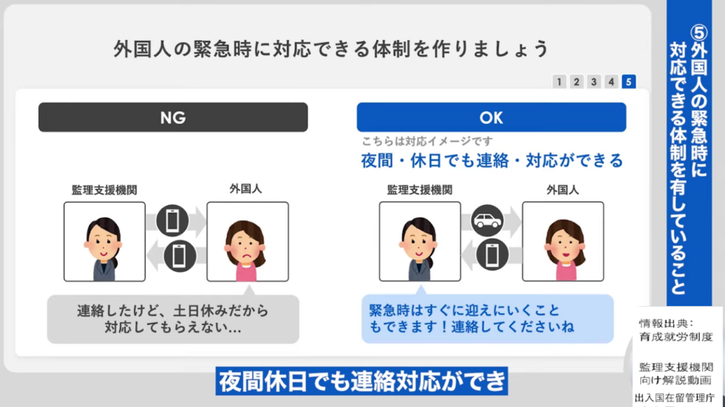 夜間・休日も対応可能な緊急連絡先を育成就労外国人と共有