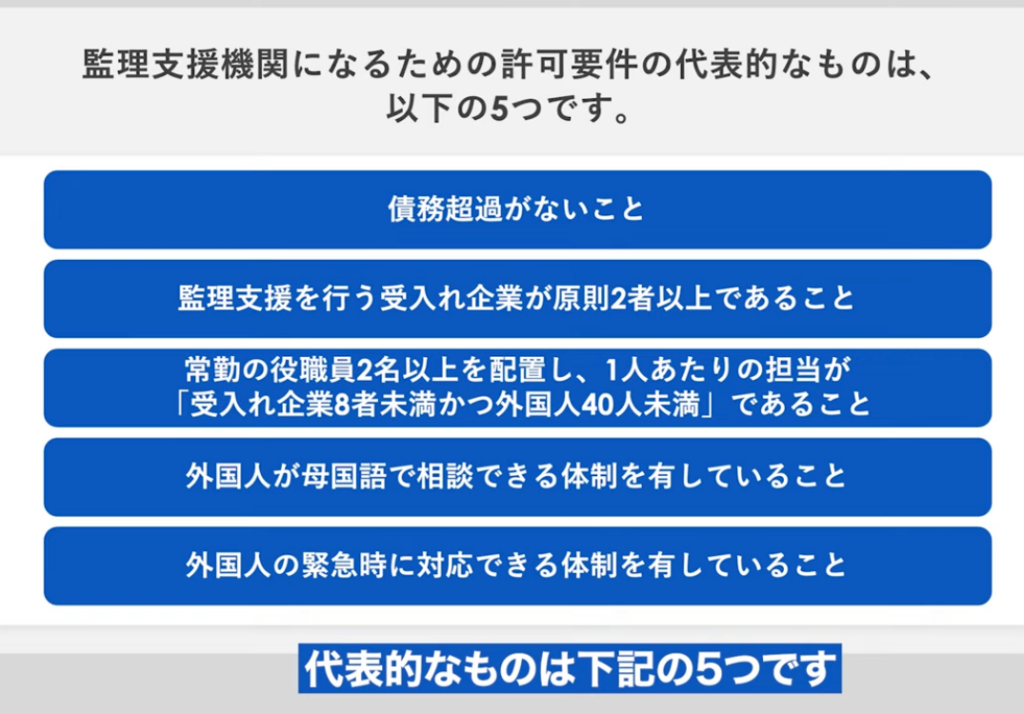 監理支援機関の許可を得るためには、この5つのハードルをクリアしなければなりません。。