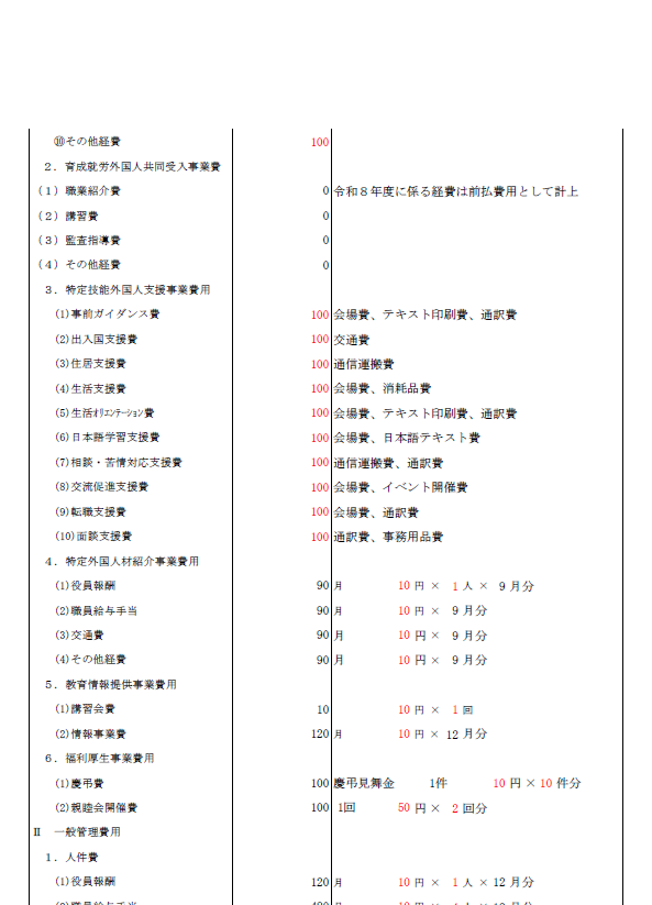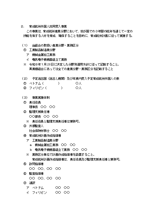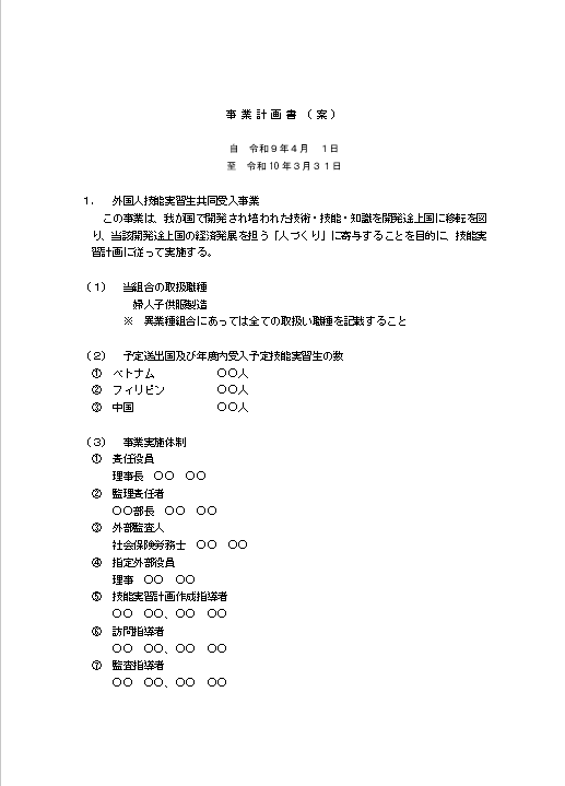 | 記載範囲 | 育成就労だけでなく、既存の全事業(共同購買、実習等)の記載が必須。 |